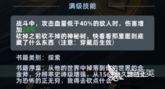 更关键的就是专属的技能,在穿戴之后就可以砍掉之前怎么都砍不动的神秘树,打开隐藏的探索区域。在战斗中攻击血量低于40%的敌人时,还可以额外的提升28%的伤害。挖资源之余,还可以当战斗辅助,实用性是比较不错的。而且它的耐久性确实很不错,堪称恐怖,从初始的1561在进化之后就可以直接接近无限。根本就不需要频繁的更换,确实有一些省心省力。末日生存讲究的就是实用和效率,道具的选择也是如此。大家一定要掌握以上的获取方法。