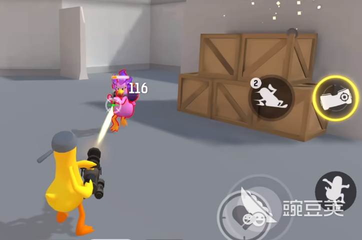 游戏里暂时没有翻跟头设定,玩家可以通过摇杆控制角色前进后退,游戏里还会有跳跃按键,点击之后角色就能向上跳跃,同时点击跳跃键和前进按键,角色会用跳跃的方式,向前移动一段距离,非常适合想在游戏里快速移动或者向高处跳跃的情况,翻滚也是角色移动的一种方式,翻滚相对来说更适合快速移动,遇到其他成员攻击的时候,利用翻滚能快速躲避对手,嘎嘎鸭作为游戏特定角色其中一个,除了外观不一样之外,还会拥有一项滑铲技能,玩家可以利用滑铲快速朝指定方向移动。