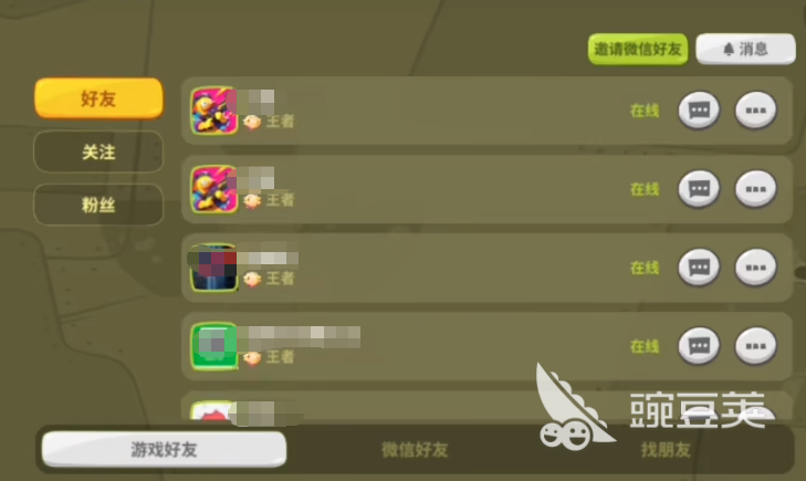 想邀请好友一起参与游戏,玩家可以点击主页面上的好友按钮,所有玩家添加的好友都会出现在里面,游戏好友会分成多个类别,其中一类就是系统里的好友,挑战过程中遇到志同道合的成员,玩家都能直接添加对方为好友,后期挑战的时候,只要对方在线,就能邀请他直接加入战局,另外也可以直接邀请微信好友,只需要点击对应的邀请好友按键即可,游戏里还会设定关注和粉丝,遇到能力较强的成员,玩家除了添加好友之外,还可以选择关注对方,能跟对方积累更多对战经验。