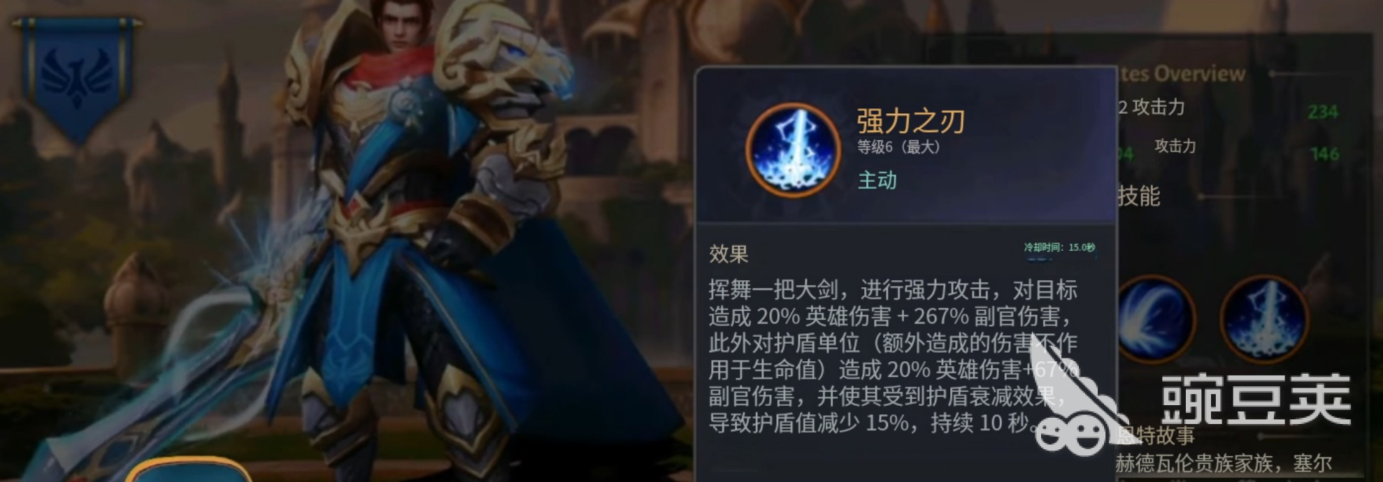 另外一项他的主动技能“强力之刃”具有很强的战术针对性。技能冷却时间15秒,挥舞大剑造成大量伤害,还可以破坏护盾单位。可以对带有护盾的敌人造成额外伤害,会降低敌方护盾值15%并持续10秒。目前版本中存在很多依靠护盾生存的敌人和Boss,查理爵士的破盾能力就更加宝贵了。该角色不但可以有效地破除敌人的防御,还可以给队友提供更好的输出环境。