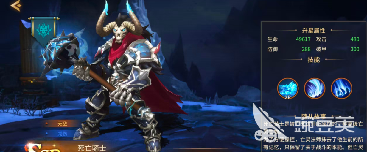 死亡骑士是SSR品质的主要前排,角色特点非常明显。他没有生前的意识,只是对战斗有本能的向往,在亡灵大军中是坚壁。玩家在九游专区等平台上可以了解到自己的全部养成信息,即技能升级路线、星级突破所需的材料、各种阵容组合建议等。