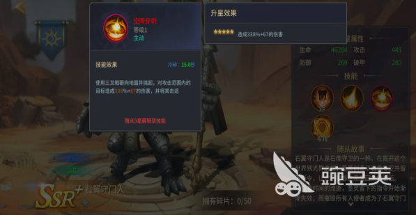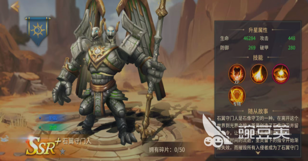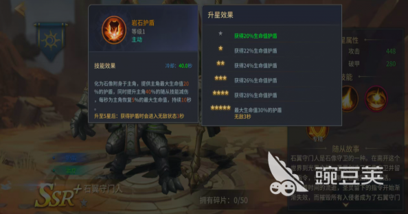 作为石像守卫的进阶形态,他自带SSR专属加成,主动触发就可以给主角叠8%的全伤害减免,单纯性就这一点,就会提升队伍在高难度战斗中的容错率。他的技能组更是把治疗输出还有防护结合在一起。第1个技能打基础伤害的同时,还会有20%的概率给主角套上一个护盾,可以吸收主角最大生命值5%的伤害。在打小怪时,慢慢的积攒生存优势即可,第2个技能空降穿刺就是一个比较实用性的范围技能。可以把敌人打退,在关键的时刻还可以拉开身位去躲技能。