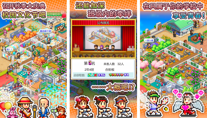 开罗游戏旗下的作品已成为了大家不可抹去的经典记忆,《口袋学院物语3》让你重回学生时代,经营建造玩法一个不少,从保健室到更衣室,80多种基础设施玩家可在其中自由收集,樱花树、图腾柱都是游戏当中的经典元素,对校园内的各个角落都可以开启你的专属布局,还可以在校园内召开秋季大庆典,提升更多人气哦!