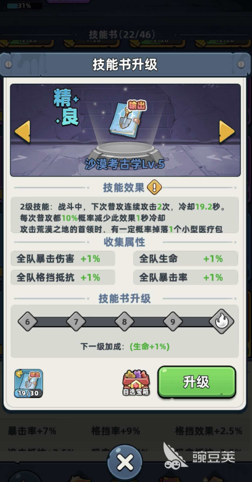 在打水元素的时候,玩家也是需要针对水元素的弱点来选择,带有克制性的技能书和角色的,水元素的弱点是沙漠考古学,这本技能书,为此,打它若是没有携带该技能书的话,玩家一定要携带该技能书,沙漠考古学可以快速的回血增强队伍的生存能力,有了这本技能书,团队的生存保障会得到增加。