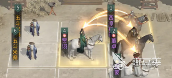 在使用该阵容的使用,玩家在英雄站位上,不要按照老思路将吕蒙给放到追击位上,这里需要放到追击位上的武将从吕蒙给换城徐庶,这样子的安排可以和贾翊形成互站追击位的格局,兵种在站位上,在吕蒙和徐庶两位武将的后面一定要分别方一个五斗米祭,然后在徐庶的前面安排上一个西凉铁骑。
