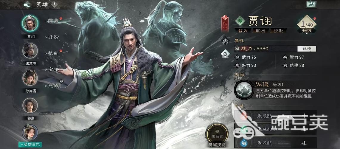 贾翊是整个队伍的核心,他的天赋纵傀在给敌人施加上控制效果的同时,还会造成智力上的伤害,并且还有可能会附加上混乱的撞他,只要敌方单面进入到混乱状态就会造成直接的伤害。