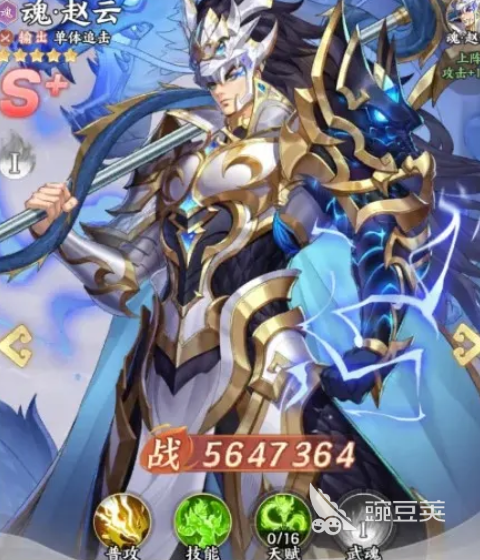 第二个就是魂·赵云,赵云在单体输出效果上面还附带了一定的追加能力,他这里进行加伤的话,后期提升上限有一定的空间,但是在有武魂这类效果的加成下对输出的提升才是比较大的,而且可以增加队伍一部分的坦度,他在1魂的情况下可以增加一部分的减伤,但是他本身是要打更多输出伤害的,所以在后期必杀效果上大家一定要注意进行触发,这里削弱了敌方武将之后,他后期进行升魂达到高强度输出的时候,还可以给我方带来一定的护盾以及控伤,在这里后期进行升级的情况下还可以给对面带来一部分的减益,所以也是非常全能的一类武将。