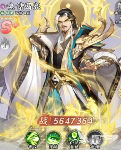 第三个为大家推荐的就是魂·诸葛亮,诸葛亮目前他在强度效果上面,其实本体的强度也是不差的,如果是魂强度的话,在这里他多了一个大招回血,此时放辅助位上面更强一些,在魂的提升效果上面一魂虽然只有50%的概率可以带来必杀追加,但是后期他的八卦阵这个技能会变得有更多怪的加倍,后期在治疗以及回路上面都会有更多的能力可以运用,而3魂4魂的效果上面可以让他变成更多的生存效果,所以在持久战的效果当中,目前的诸葛亮也是会越来越向肉盾类型效果发展的。