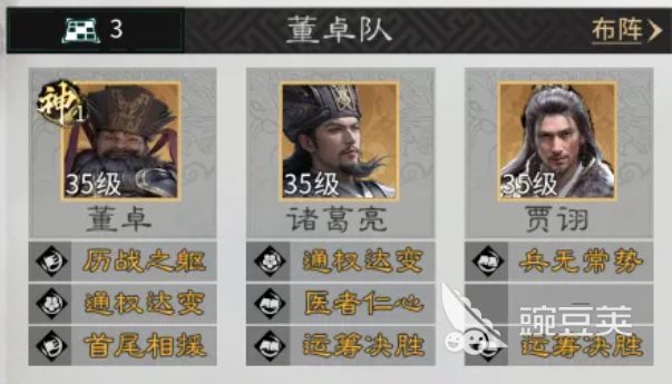 混乱永动队当中大家可以用的成员就是贾诩、诸葛亮、董卓,他们目前在经过一系列的调整之后,仍然有非常强的控制能力,而且整体阵容相对其他核心类型武将来说,进行定向抽取的话还是比较容易获取的,在3个武将都获取了之后,大家就要注意给他们进行阵容站位的时候,贾诩这里不用占追击的格子的效果,但是董卓是一定要战的,他一定要放在贾诩追击格子上面才可以触发自身能力,而且诸葛亮在这里同样是要跟董卓进行互站,这样的话,追击格子才可以为大家带来足够的强度加成,董卓下方的话,大家可以安放西凉铁骑,而诸葛亮跟贾诩后面的话,大家都可以放五斗米祭,这样搭配整体阵容成功之后,其中的董卓他的能力叫做独断专权,只要使用的话,就可以让我方全体角色的统率都夺取过去,然后随机给对方3名目标带来挑衅的功能,同时对这些目标施加异常状态的时候,我方后续的输出是会更加容易一些的。