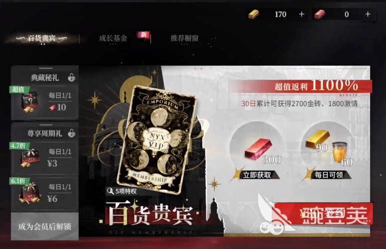 游戏里并不会设定强制氪金,是否要在游戏里充值,要看玩家个人的需求,不想充值的成员要多去参与游戏的各项任务,利用游戏任务获取大量资源,想要氪金的玩家,可以去挑选适合自己的氪金选项,玩家可以选择首充6元领取上任致礼,连续三天时间,每天都可以领取特定奖励,算是游戏里比较基础的充值,游戏里还会设置百货贵宾充值玩法,花费30元可以在30天的时间里每天领取金砖、红砖和激情奖励,连续30天可以累计领取300红砖,2700金砖和1800激情。