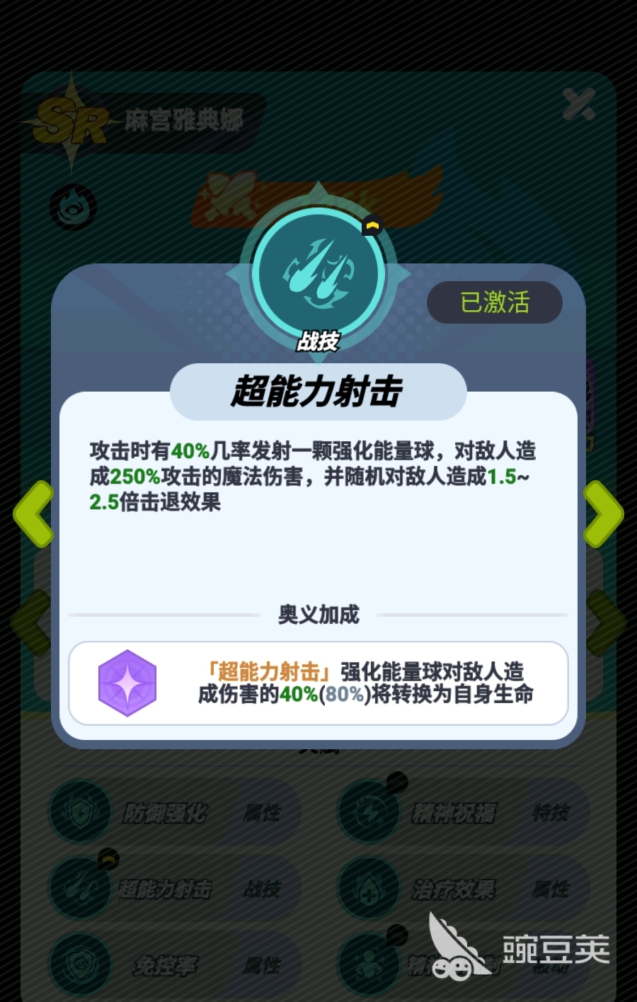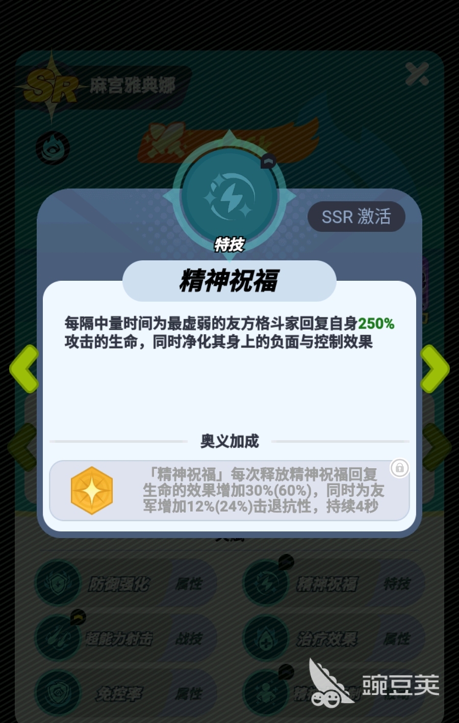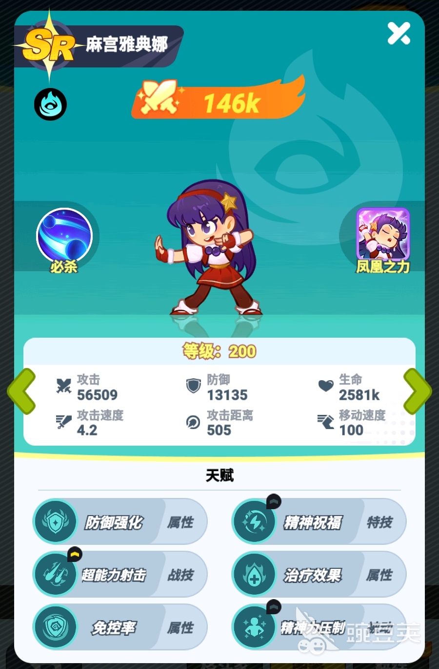 此外,麻宫雅典娜的战技也有着很强势的机制,在释放时不光能对敌人造成高倍率的伤害,还能对敌人造成高倍击退效果,实战中能直接将近身的敌人推远,进一步强化队伍的控场能力。若是麻宫雅典娜激活了奥义,那在释放战技时,麻宫雅典娜还能为自己回血,强化自身在战斗中的生存能力。而且一旦她升到了SSR品质,还能不依赖必杀为血量最低的队友间歇性地施加一次治疗,并清理掉队友身上的负面和控制,这也令麻宫雅典娜对团队的增益会再上升一个档次,所以玩家若是有机会,很建议将麻宫雅典娜突破至SSR品质。
