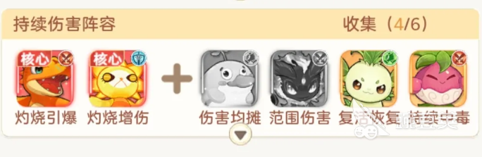 第一个搭配当中,大家可以用的是水舞灵、牛大力、火仔、炎恐龙,这个阵容搭配起来的话,因为前排角色用的比较少,但是输出角色用的比较多,所以玩儿起来的话,大家可以根据其中的两个输出位置角色保证其中核心,这样的话,整体阵容就可以玩儿灼烧为主要攻击方式的能力了,这套阵容相对来说凑齐也是比较容易的,因为水舞灵还有牛大力在新手时期都是可以免费拿的,不过他们在初始的形态下,大家想要发挥出更多的力量,这里就要保证英雄在进化的时候,一定要保证他们提升起来的形态,要变成第二形态。