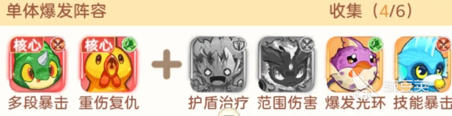 第二套阵容的话,大家可以进行搭配的是咕咕鸡、小绿蜥、圆河豚,还有一个随机定位角色,在这里的话其实大家可以当做一个进阶类型的效果使用,因为前期的灼烧其实很多新手前期都会选择使用走这个路线,而其中火龙的话,是作为主要的核心角色,六级进行捉宠的话就可以快速的拿到,所以在这个进阶的阵容当中,大家还可以看到的就是小绿蜥小绿蜥自身的技能效果是比小火龙还要高一点的,所以大家如果拿到小绿蜥息的话,就算没有达到成长期,这是在第一形态的话,大家也可以拿到它更多的搭配强度来组合阵容,比如在前期小绿蜥只要有7级的话,那么后期他进入成长期也是比较快的,他的上限下限目前相对来说中间给的空间比较多,让小绿蜥作为核心的输出养成,那么这里大家就要注意后期玩儿的话,更建议走暴击流。