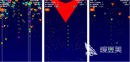 采用极简美术风格,但玩法结构清晰完整。玩家操控战机在固定区域内躲避弹幕、清除敌机,每轮战斗均设有普通敌人与阶段性BOSS。游戏提供三种预设难度档位,对应不同敌机血量设定;同时开放自定义模式,支持手动调节敌方生命值倍率,满足新手入门与硬核挑战双重需求。核心成长路径围绕分数累积与关卡突破展开,强调反应力与节奏把控。