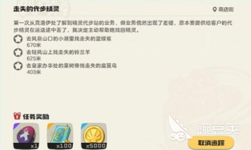 在获取恶魔狼蛋的时候会涉及到一个看上去就比较简单的任务,此时玩家先要触发任务,找到NPC打开地图直接来到商店街西,先走到可可果旁的传送阵位置,转身就可以看到代步站的站长克洛伊,这时候玩家需要选择跟他对话,就能够领取走失的代步精灵的任务。在选择领取任务的时候,克洛伊会告诉玩家他负责代步精灵在运送途中出现意外,直接走失了,而玩家此刻需要做的就是帮助克洛伊找到三只走失的精灵,这样的话就能够完成委托任务,获得恶魔狼蛋。