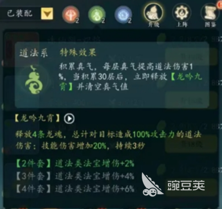 当你身上携带道系法宝并释放技能时,可叠加真气值buff,每一层可使伤害提升1%,最高能够累计到30层。此时将会清空全部真气值层数,并立即释放神通技能,龙吟九霄,对敌方造成巨额的伤害,同时获得一个提升自身伤害的buff,可让你在接下来的三秒之内,所有的法宝伤害提升20%。总而言之,如果你平时的作战风格是速战速决,并且比较喜欢近身作战的话,那么道法系绝对是最适合你的流派。