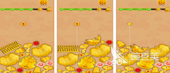 本作采用高饱和度金色主题界面,营造出浓郁的财富氛围与强烈的视觉吸引力。核心机制延续经典合成逻辑:关卡中,屏幕顶部持续刷新不同体积与等级的黄金单位;玩家需在倒计时结束前,将两个同级黄金准确归并至相邻格子,触发升级反应。每关设有明确分数目标,配合渐进式难度设计,兼顾新手引导与硬核挑战需求。