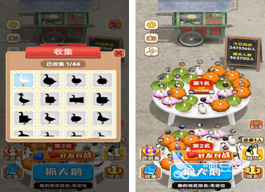 本作以“抓大鹅”为核心目标,玩家需在多变场景中完成限时挑战,收集限定款大鹅形象,并冲击全国排行榜。游戏支持跨省竞技,无论身处何地,均可代表所在省份参与比拼。玩法上创新融合3D找茬与三消机制,每个关卡均设双阶段挑战——通过首关解锁次关,成功通关即可获得专属大鹅,逐步达成全图鉴收集目标。