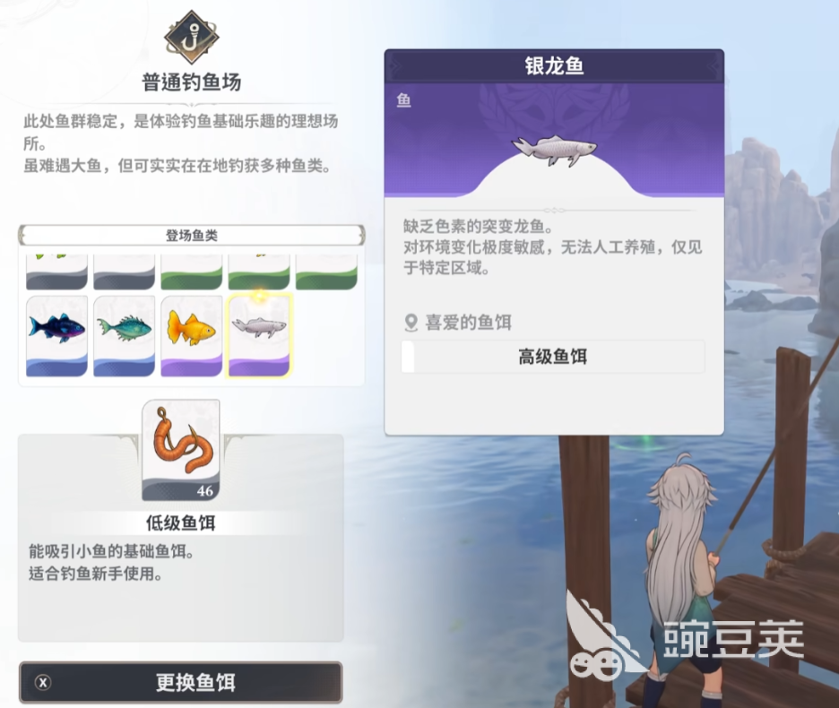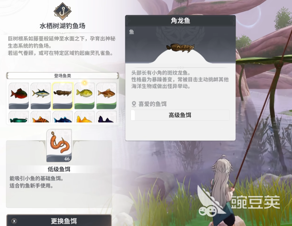 在这片森林深处有条宝贵的龙鱼,其中一条就叫角龙鱼。该条鱼的获取途径比较广,给玩家提供两种选择,既可以去森林关卡的普通钓鱼场碰运气,也可以去水栖树湖钓鱼场。