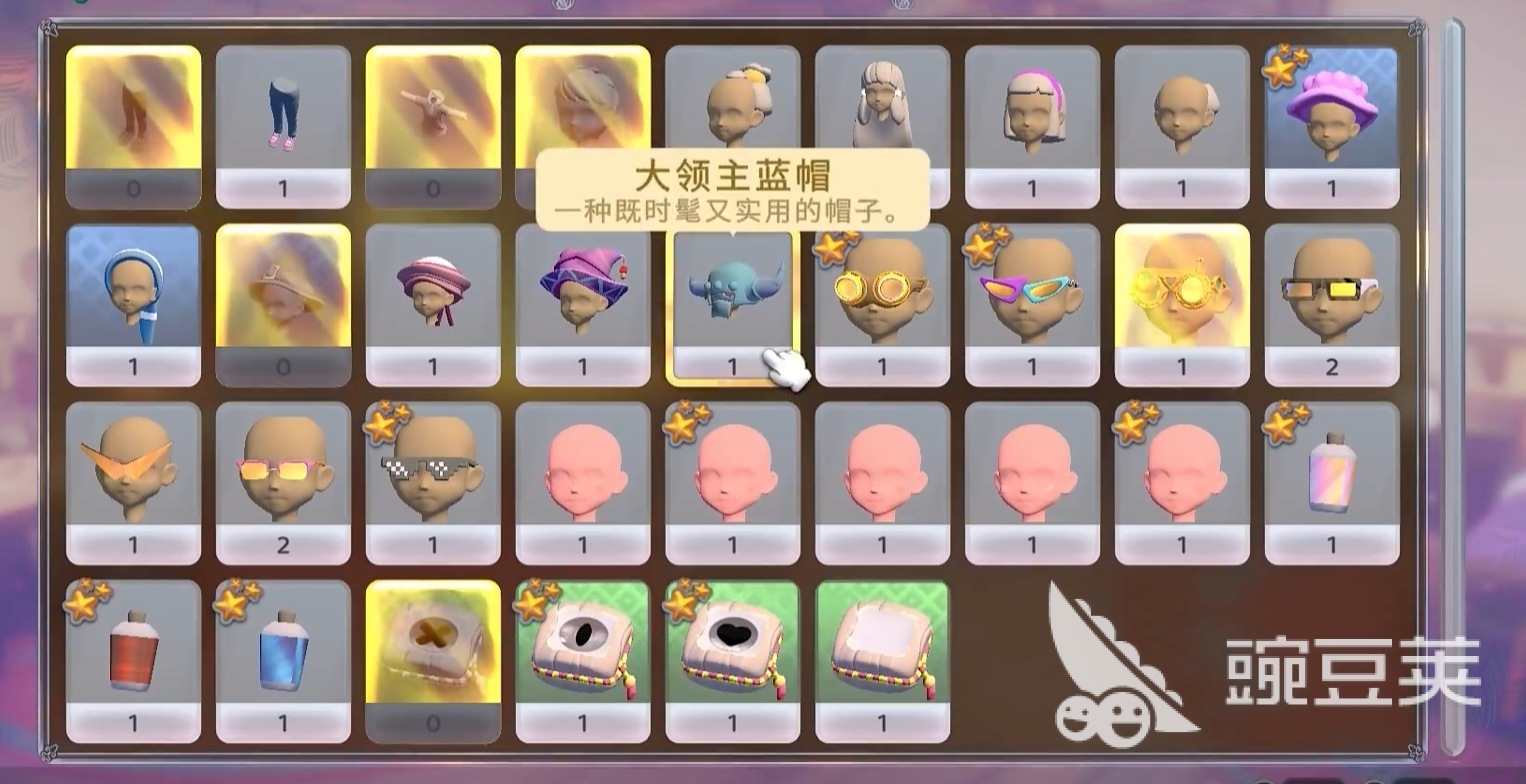 游戏中头饰的设计带有奇幻和实用主义的双重色彩,帽子类道具最丰富。大领主蓝帽和冒险家帽子都是时髦实用的帽子。尽管在游戏中它们主要是起装饰作用,但是从设定上来说,这些帽子都暗示了角色在探索世界的时候所处的身份和状态。戴上一顶宽檐的冒险者帽子,仿佛下一秒就要踏入未知的洞穴去探寻遗迹的秘密;大领主蓝帽会给你带来一种统御家园的威严感,在建设小镇的时候更具领袖气质。