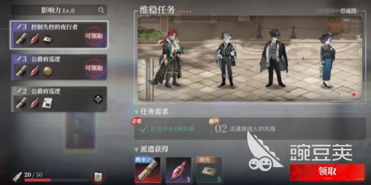 夜幕之下手游排班相当于游戏里的派遣设定,每个派遣任务都会有限定时间,可以选择角色,在对应的时间内完成探索或者巡逻任务,既能通过这种方式获得资源,又可以让不常用的角色,得到一些较为基础的经验,建议玩家在主要角色足够使用之后,把不常用的角色都派遣到任务中,争取获得更多游戏资源。