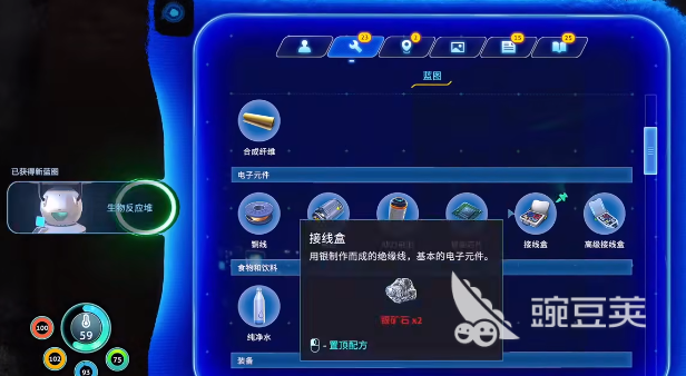 在合成的过程中,还需要一些核心的组件,例如智能芯片,电池,还有接线盒。这三个组件都需要提前的收集,好在所有的原材料都可以在初始的浅水地带找到。这里的地形比较平缓,没有强力的敌对生物,而且能见度也会比较高。是新手一开始采集物资的好选择,并不需要冒险深入深海。电池的制作还需要铜矿石以及酸性蘑菇,逃生舱周围的深海区域还可以看到一些裸露的铜矿石,那些酸性的蘑菇基本上都是在岩石的边上,采集之后就可以得到电池。