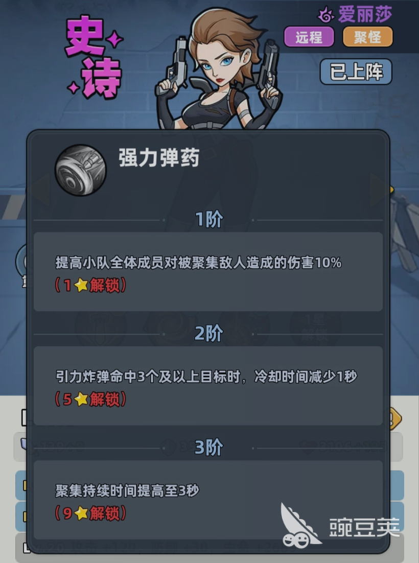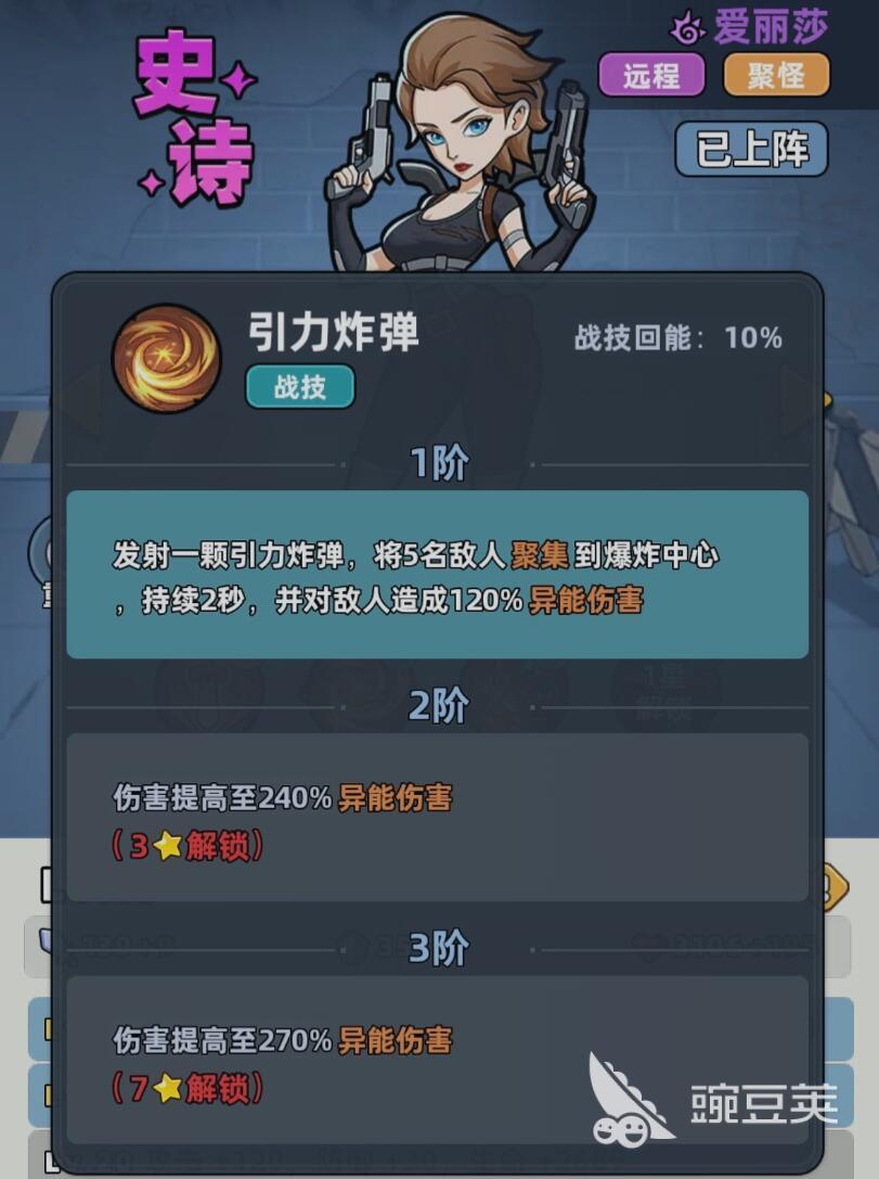 爱丽莎在游戏中作为辅助,她实现的是远距离作战,对于玩家来说,它能够聚怪,控制,属性是比较扎实的,一旦当他的等级得到提升之后,能够逐步的增加攻击、防御跟生命属性。当爱丽莎还处于一级的时候,能够为整个队伍提供攻击、防御和生命的基础加成。一旦10级解锁空爆炸弹的话,往往让他的技能体系的实力变得更加的强悍。这时候不仅对范围内的多名目标造成伤害,更关键的是还能够对已经被聚怪的敌人追加额外的伤害,正是因为这些技能形成了闭环,所以他才能够给整个队伍创造更好的输出环境。