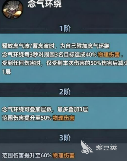 一星被动"念气环绕",释放技能之后,每3秒,会对周围敌人造成范围伤害,同时给自己加一个50%减伤的护盾。这个被动让丸子头在输出的同时,也有一定的生存保障,不会那么容易被打残。二星被动"雷龙出海",对感电状态的目标,触发额外100%伤害,还会处在"雷龙状态",让目标受到的普攻伤害再提升20%。这两个被动加起来,把丸子头的完整输出链,彻底激活了,强度又上了一个台阶。