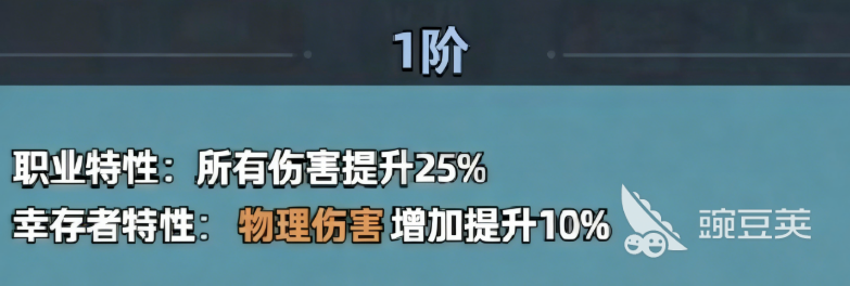 先说丸子头比较突出的一点,她的伤害加成,在开局阶段就已经很可观了。职业特性直接给所有伤害加25%,幸存者特性再额外给物理伤害加10%,两个加成叠在一起,前期输出,已经比大部分角色高出一截。对于不怎么充值的玩家来说,前期能稳定输出的主C,本来就不多,丸子头这个性价比确实挺高的。