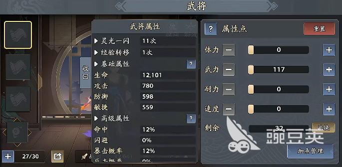 放在这里的话不同的属性加点作用大家也要注意,一般给体力进行加点的情况下,在生命以及敏捷还有防御这方面的属性都会有所提升,这里的主要功能就是让他在生命数值上面得到更高的上限提升效果,而给武力进行加点的话,攻击以及生命同时都是会有维度提升效果的,这类武力加点效果一般是用在输出武将身上的,而且他们最主要关注的,还是其中的攻击能力提升,如果是给耐力进行加点的话,那么大家会看到他的防御属性跟生命属性都有所提升,速度这个属性很多玩家会忽略掉,因为给他进行加点的玩家不多,这里只要速度有加成的情况下,武将的敏捷、攻击和生命三者都会有所提升。