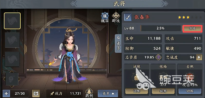 除了这类提升之外大家还要注意,每个武将他在性格训练上面是不一样的,性格在不同的体现效果当中会保证他培养方向的不一致,而且性格在其中也分为两个层级,普通性格跟大师级别的性格能力是不一样的,所以大家后期要通过不同性格搭配的时候,来了解这里的武将定位是什么样的,把每一个武将选定了性格之后,就要通过他的性格来确定培养路线,比如说如果是勇猛或者是暴躁之类的性格,后期走一些全攻击类型的培养路线,就会有更多的强化属性功能。