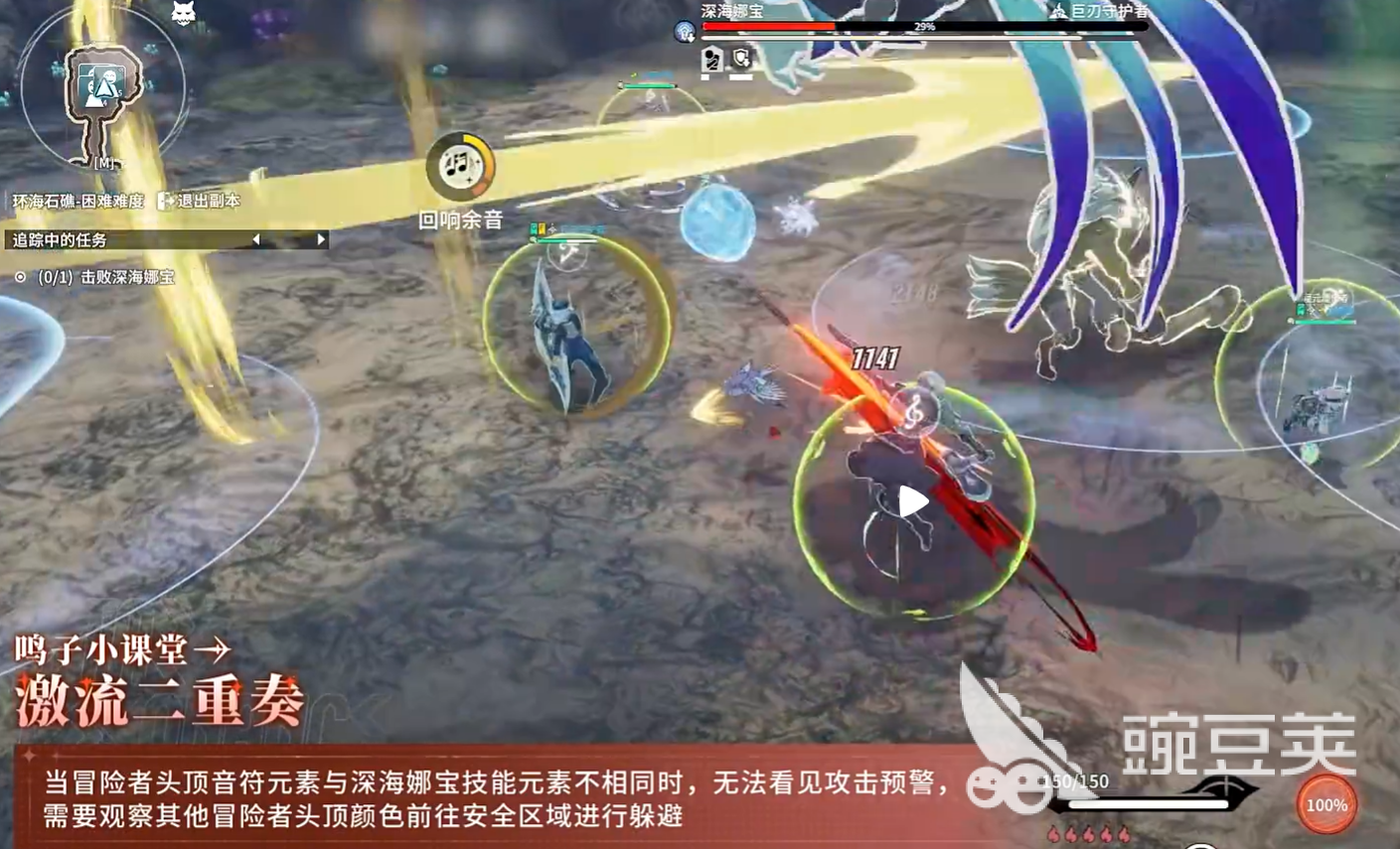打了一段时间后,深海娜宝会点名全队,然后玩家周围会生成水泡,接着放出大范围的全屏攻击。这里的处理方法并不复杂,关键是要进到和自己头顶音符相同的水泡里。只要进对了,就能安全躲过这波伤害。要是站错泡泡,或者反应慢没进去,吃到的伤害会很高。这一段看起来不难,但实战里很容易慌,所以在点名出现时,先确认自己是什么标记,再马上找对应水泡,效率会高很多。
