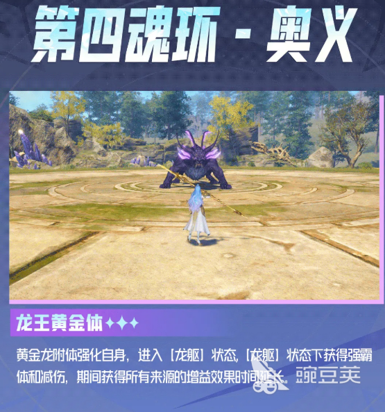 第四魂环奥义是龙王黄金体。开启后,王秋儿会进入【龙躯】状态。这个状态下,她会更硬,站场能力明显提高,不容易被打断,还能减伤。更重要的是,在这个时间里,她从其他地方拿到的增益效果,持续时间会被拉长。这样一来,不管是自己身上的强化,还是队友给的加成,都能多吃一会。这个技能不只是保命,它还会让后面的整轮输出,变得更完整。