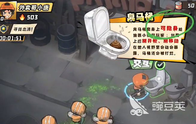 挑战过程中要合理借助游戏里的特殊道具,场景里会设置很多可以交互的道具,靠近之后上面会直接出现交互按钮,获取血清的过程中,玩家可以借助场景里出现的臭马桶,冲马桶使用之后会直接进入隐身状态,要不在对手视野范围内移动,角色都会进入隐身状态,可以先保持不动,让周围僵尸放松警惕,接着快速朝血清方向移动,假如在过程中被僵尸发现,也不用担心,玩家依旧可以直接攻击。