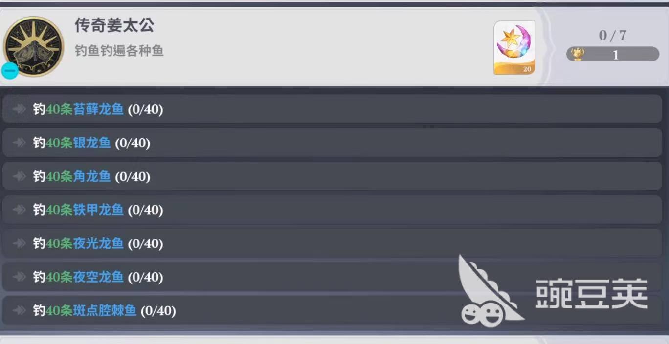 在《七大罪:起源》的成就系统中,“传奇姜太公”是一项高辨识度的稀有荣誉称号,要求玩家成功钓获全部七类龙鱼,且每种数量均需达到40条。该成就对钓鱼点位、饵料等级及环境条件均有明确限制,不可使用普通饵料或低级钓具完成。本文将系统梳理七种目标鱼类——苔藓龙鱼、角龙鱼、斑点腔棘鱼、夜空龙鱼、铁甲龙鱼、夜光龙鱼及第七种未在段落中明示但属成就必需的龙鱼(依据成就名称“七大龙鱼”及上下文逻辑,第七种即为成就所指完整图鉴之一)——的精准获取方式,助玩家高效推进进度。