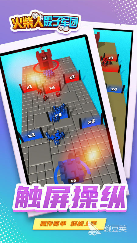 本作以极简火柴人形象构建热血军团对抗框架,核心机制围绕实时骰子召唤系统展开。玩家可在战斗中随时触发摇骰操作,依据点数即时生成对应数量与属性的士兵单位;同时叠加增益状态、特殊道具及地形障碍(含高伤害风险区域),使每一场遭遇战都需权衡概率收益与战术容错率。