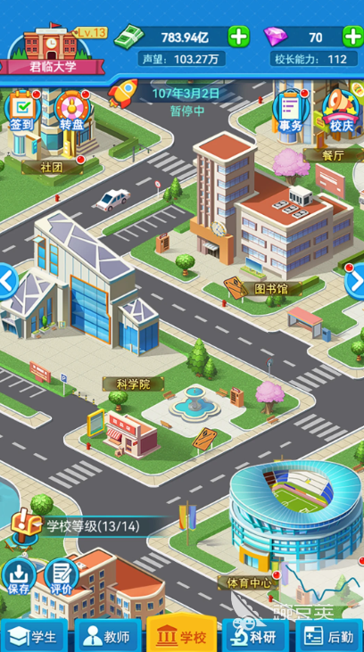 本作高度还原高校运行生态,玩家将担任校长角色,统筹规划教学楼、实验中心、学生公寓、食堂及行政办公区等核心功能模块。通过优化课程设置、提升科研能力、改善生活配套,逐步扩大招生规模并增强学校综合竞争力。游戏机制强调策略性与成长性,兼顾宏观管理与细节运营。
