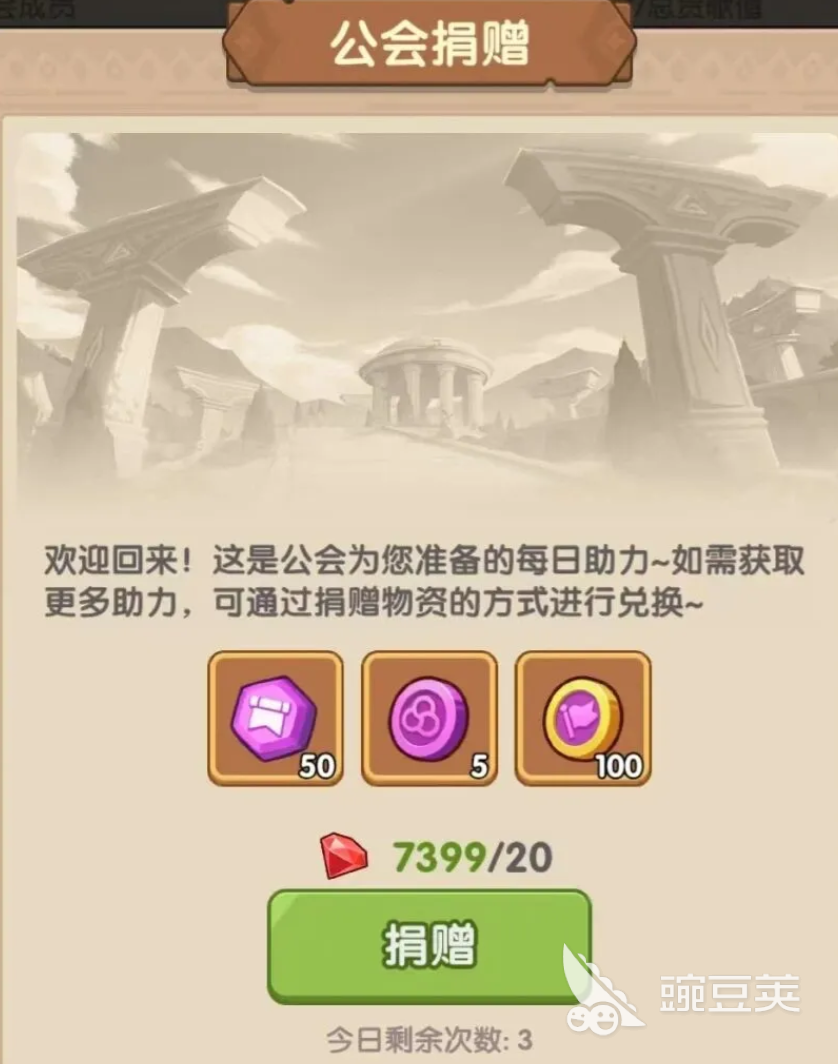 加入公会后,玩家们的第一件事就需要去公会大厅做每日的捐赠。这是提高公会实力的基础,也是个人收益的主要来源。每天来这里贡献一下,用捐赠的钻石可以同时获得公会经验、公会活跃度、公会币。这一举三得的操作绝对是血赚不亏的,公会经验可以提高公会等级,解锁更多的高级功能,公会活跃度关系到全员宝箱的解锁,公会币是公会内部流通的硬通货。玩家们需要记住:一个活跃的公会如果没有玩家的每天坚持,是不可能成功的,玩家每次的捐赠都是一份集体的荣誉。