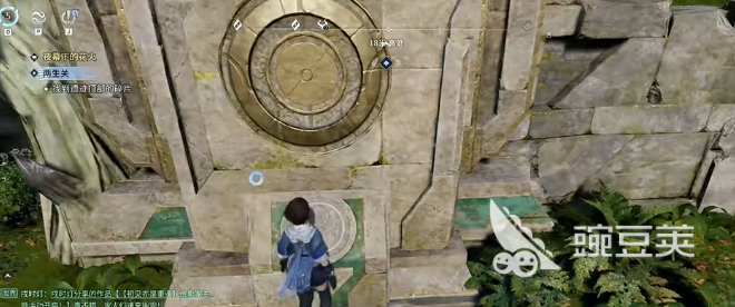 大家可以看到移动石板就会从一侧向顶部方向移动。进行到中间的位置就会出现短暂的卡顿,这就是一个正常的机制,并不是游戏卡顿。不要选择提前去按交互键,保持耐心等待,看着石头通过中间卡顿区域。后直接跳过去,落在石板上面,站在上面之后不要停留,马上调整视觉角度,瞄准顶部的位置。第一个操作是很关键的,太偏或者是太低都会导致操作失败。调整之后抓住石板移动到最高的高度,然后完成二段空中跳跃。