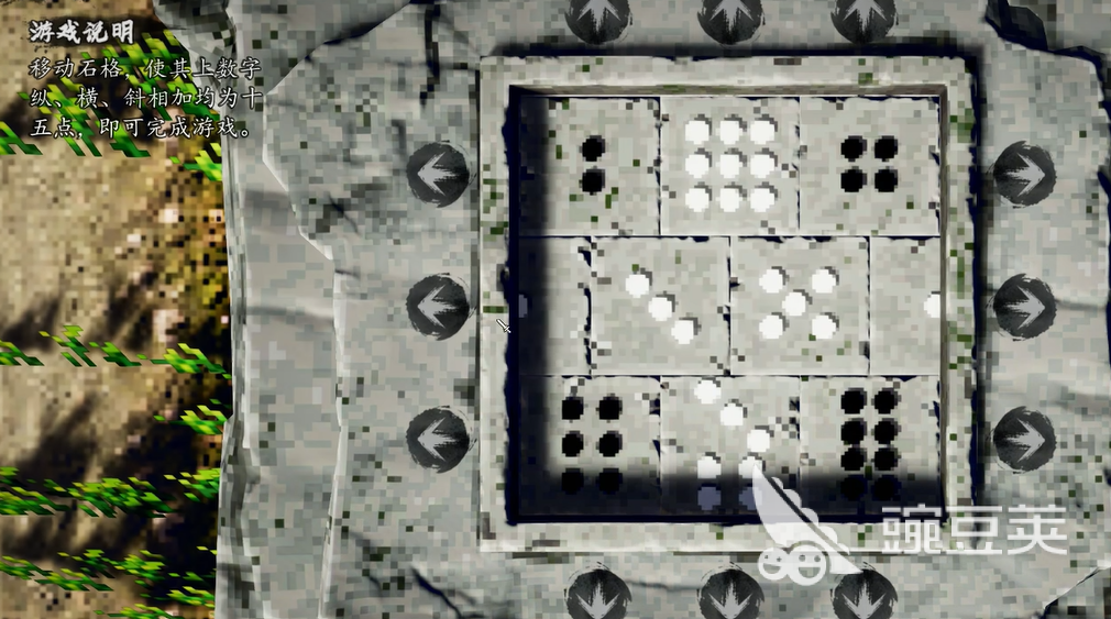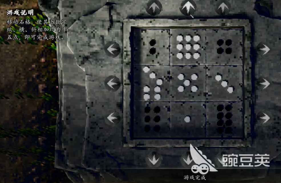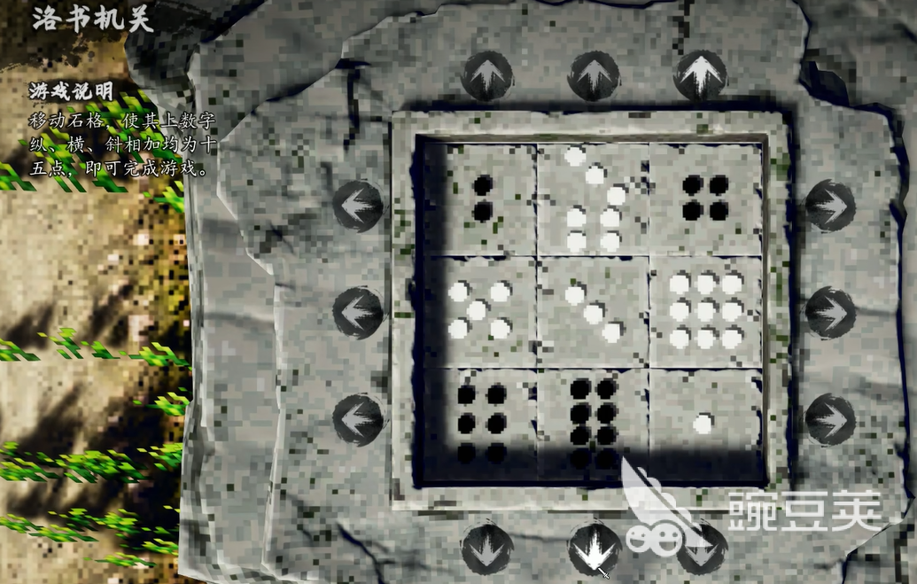 这个河图和洛书,它其实算是一个连在一块的大关卡。玩家得把这些小谜题都解开,然后才能走到下一个地图里面去。刚开始碰到这个机关的时候,大家得先去弄洛书那个部分。机关上面会有一个大圆盘,最外边那一圈会有四幅不太一样的图画。想要把它解开,玩家得去拨弄那四个角落的数字,要把它们都调成二十四。然后中间的那个地方,得看着旁边图画的样式去选对应的图案。等把这部分弄好了之后,就可以接着,去弄后面的河图机关了。