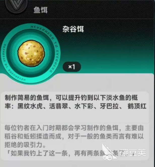 杂谷饵为进阶阶段主力淡水专用饵,由碾碎稻谷与活性蚯蚓浆按3:1比例混合发酵制成。实测数据显示,其对黑纹水虎、活翡翠、水下彩、牙巴拉、鹤顶红五类目标鱼种的单位时间捕获效率提升40%至65%。该饵料在主线淡水区域任务、鱼类图鉴批量收集阶段表现突出,能显著压缩单次垂钓周期,提升整体流程运转效率,是中前期淡水生态探索的核心配置。