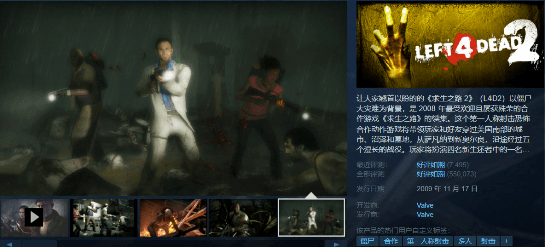 【短评】:==对这款的了解仅限于貌似是v社出的一款非常经典的丧尸游戏。不过管它呢,4块2这不跟白送一样么