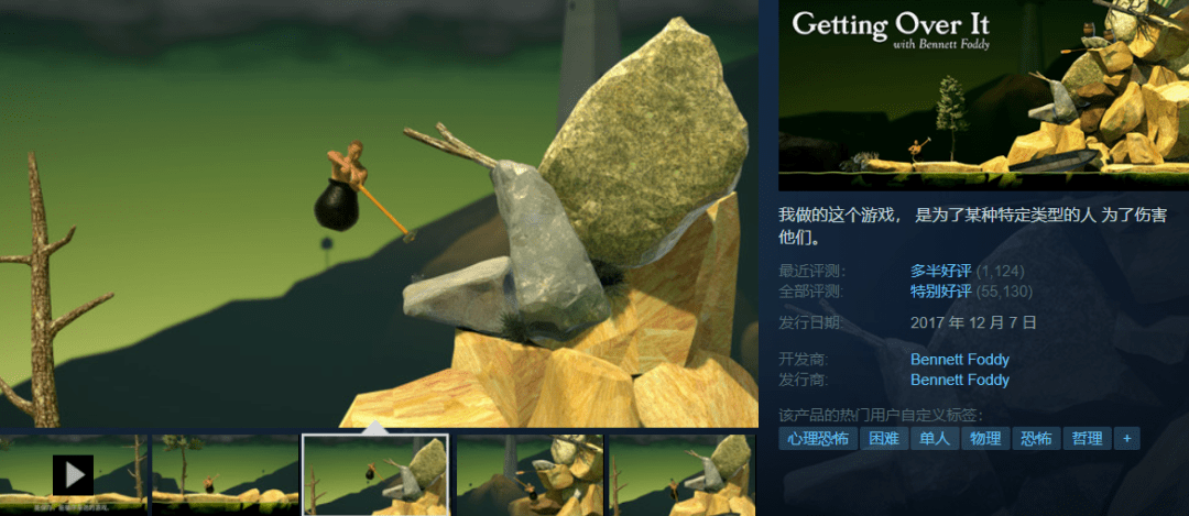 【短评】:非常推荐,尤其是最近工作不顺的时候可以拿出来玩一玩,很治愈。 生活如果就像这个游戏一样简单就好了。你会发现,这游戏跟人生一模一样,有时候爬的很快很高只是运气好点罢了。