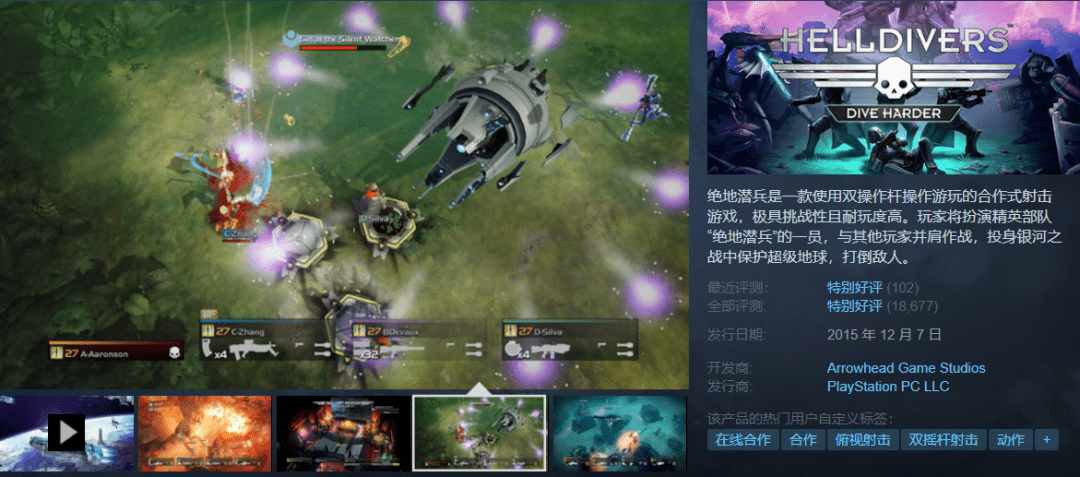 【短评】:是个和朋友一起玩的好游戏,单人组队都好玩,队友杀的很爽 这 byd超级地球我是一秒也不想守护下去了。快把二代端上来罢!(
