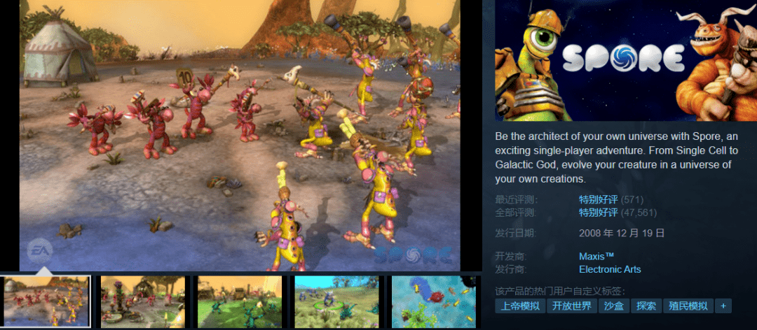 【短评】:从水下第一个生命的萌芽开始,到石器时代的巨型野兽,再到人类第一次直立行走,你已经历许多…老鼻子经典了…附上修改中文方法:在库内右击spore,选择属性,默认第一页设置启动项,在最后一个设置修改的空格里填入-locale:zh-cn,重新启动游戏就可以了。