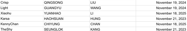 除此之外,本赛季当之无愧的顶流战队WBG合同情况也是吸引了很多人的目光,毕竟粉丝都很关心队伍里主力选手的合同长短。作为WBG的绝对核心,上路The Shy跟打野Karsa一样都是一年的合同,两人的合同都会在今年年底到期。这也意味着在今年夏季赛结束过后,WBG就需要考虑上野合同结束后的合同续约的问题。