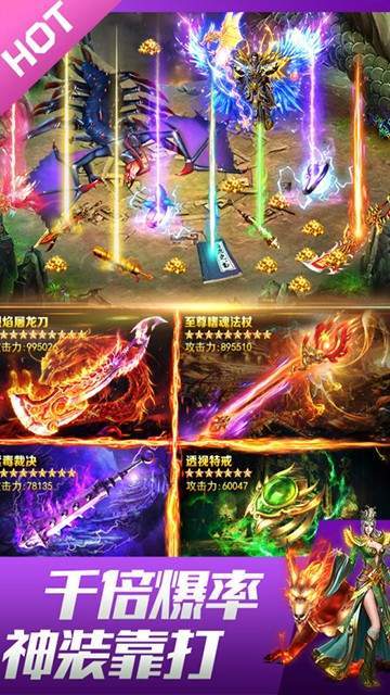 单职业设定,公平开局,杀怪装备全回收,红包免费送,单刷一切BOSS,超高爆率,满屏光柱,一秒五刀,刀刀暴击,超炫的技能,极致的快感,好不好玩你说了算!快来体验!