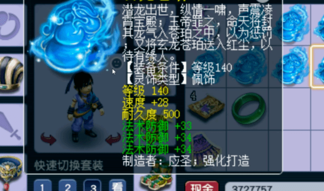曾经140三法防佩饰的价格并不高,但随着越来越多的法谛听出现,140三法防灵饰的价格一路飙升,如今在高端PK场上,法防不够被谛听群秒一波就会被直接带走。这位玩家新出的140三法防佩饰有点东西,三条法防属性全都爆了。据说,这种三法防灵饰能轻松卖个高价,看着真是让人眼馋。