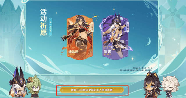 这个角色还没加入卡池的时候,黑皮御姐的形象就俘获了许多玩家的心,大家都很期待这个角色的上线,这次也算是不负众望了。而且值得注意的是,在3.6版本更新后,她还会加入常驻卡池,所以没有攒够原石的小伙伴不用着急了。
