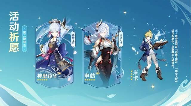 上半卡池的另一个角色是赛诺,作为复刻的角色,喜欢的小伙伴不要错过了。下半卡池则复刻了申鹤和神里绫华,这个有点出乎大家的意料,毕竟官方预告前瞻直播的时候有阿贝尔,不过也背刺了一波内鬼就是了。